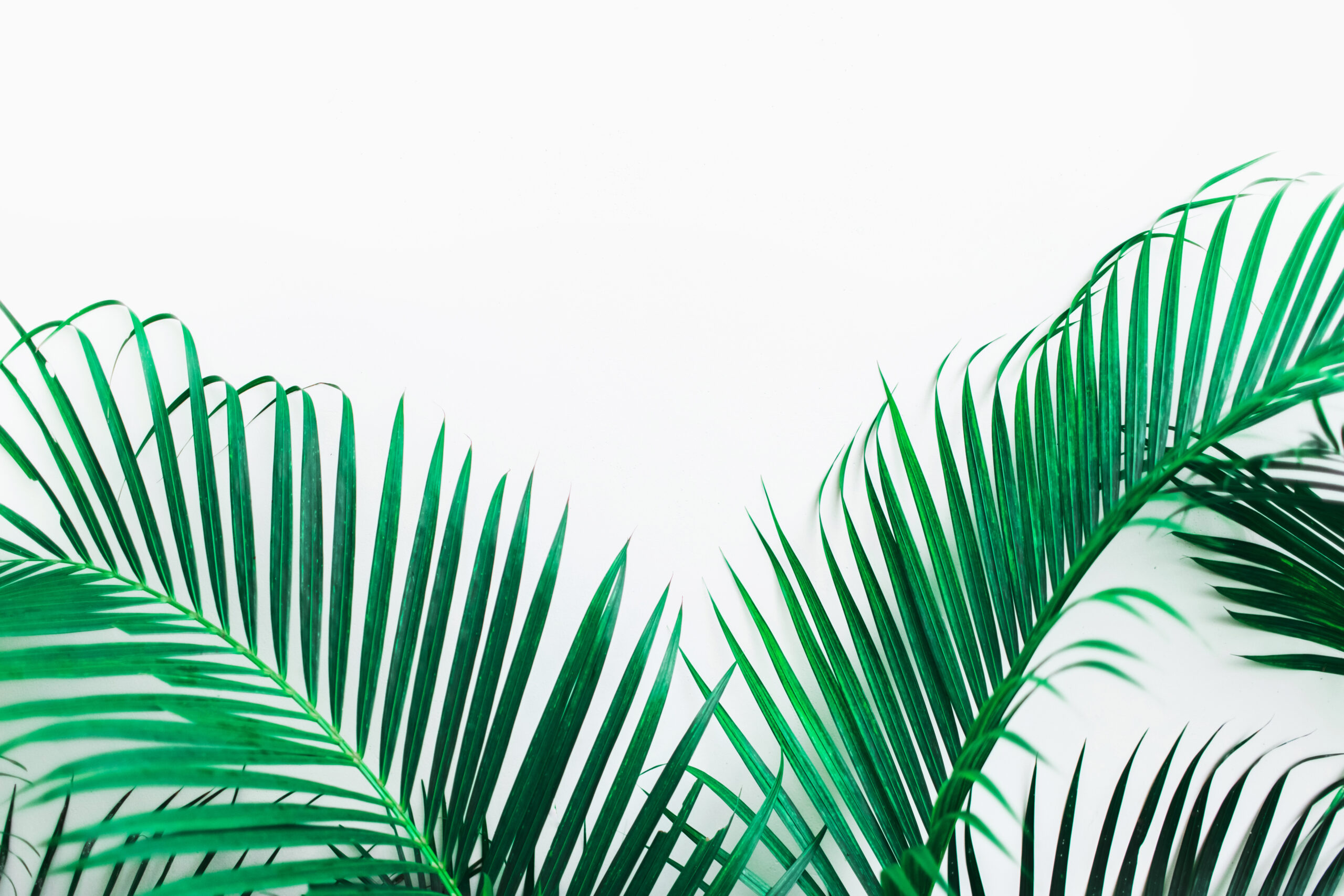 Background with tropical green palm leaves isolated on white. Em