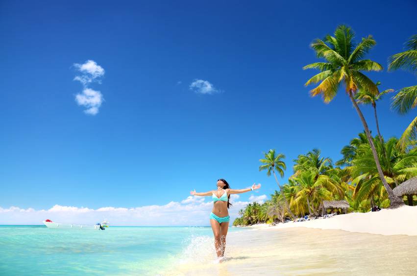Carefree young woman relaxing on tropical beach
